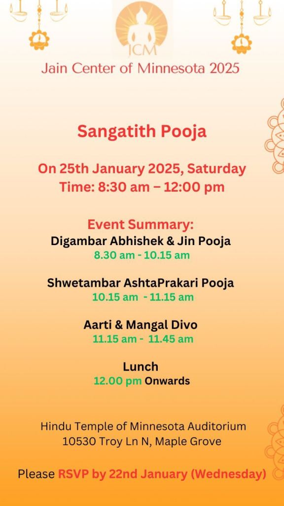 If you have any questions regarding this or any questions related to sponsorship, please email your questions at jcm@jaincentermn.org. We request all the members to participate and be present during this event.